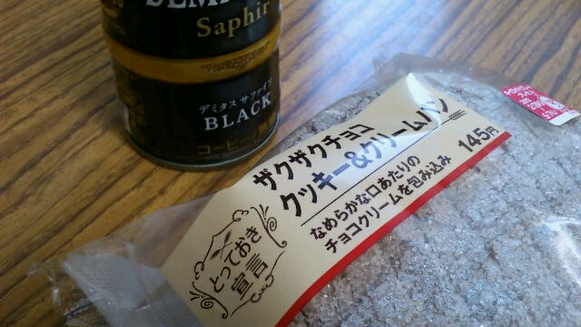 今日の朝ごはんは、ザクザクチョコクッキー&クリームパンでした。