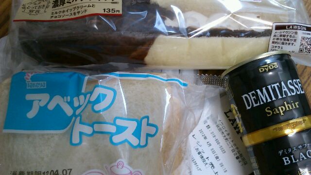 今日の朝ごはんは、 チョコロール 濃厚ミルクホイップとアベックトーストでした。脂質は、13.1gと16.3g、ちょっと多すぎですね。