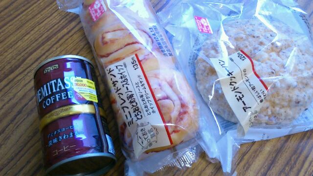 今日の朝ごはんは、アーモンドクッキーパンとミニブレッドサンド、コーヒーはデミタスでした。