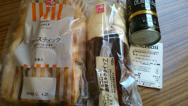 今日の朝ごはんは、またまたバタースティックとチョコロール濃厚ミルクホイップでした。