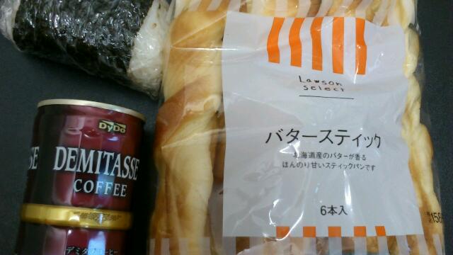 今日の朝ごはんはおにぎり1つとバタースティック、最近のお決まりコースです。(^^;