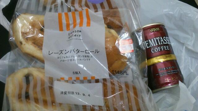 今日の朝ごはんはおにぎり1つとレーズンバターロールでした。