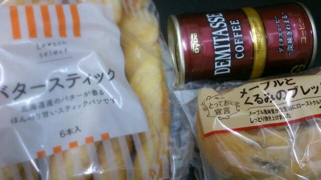 今日の朝ごはんはおにぎり1つとバタースティックとメイプルとくるみのブレッドでした。(ここまですべて予測変換で入力(^^;)