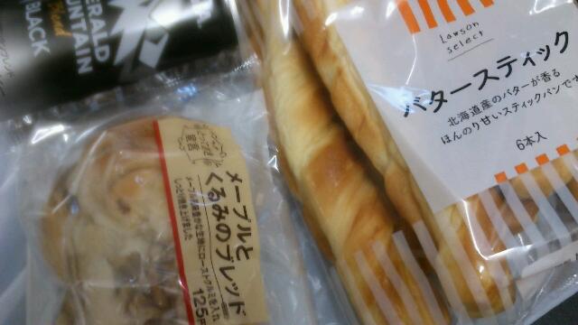 今日の晩おやつはバタースティックとメイプルとくるみのブレッドです。