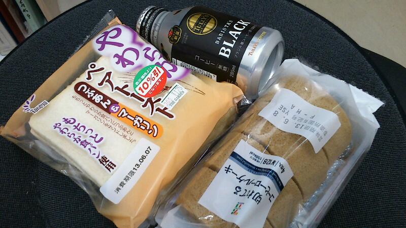 今日の晩おやつはペアトーストと切れてるコーヒーロールケーキです。