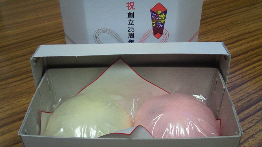 そんなわけで御祝いの紅白饅頭を頂いた。