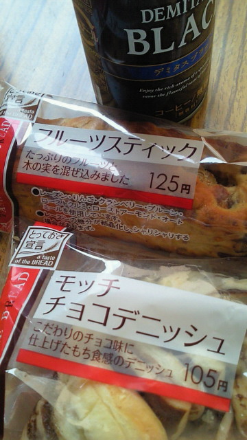 今日の朝ご飯は、ローソンで購入したフルーツスティックとモッチチョコ。