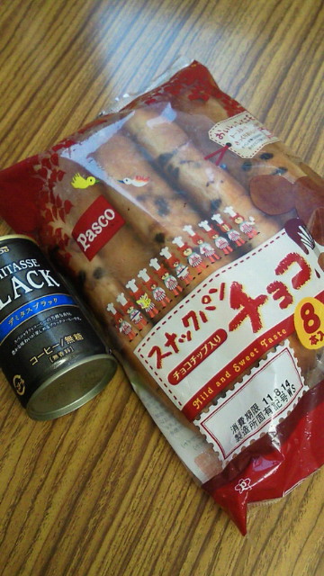 本日の朝ご飯は、パスコのスナックパンチョコです。(-人-)