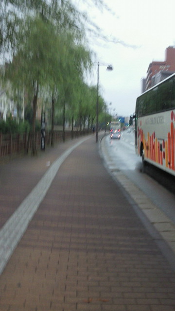 前日に震災後の東京発こまち一番列車に手を振るという記事を読んでいたので、ふいにこの高速バスに向かって手を振ってみようかなと思ったのでが、窓にはカーテンが…。(^^;