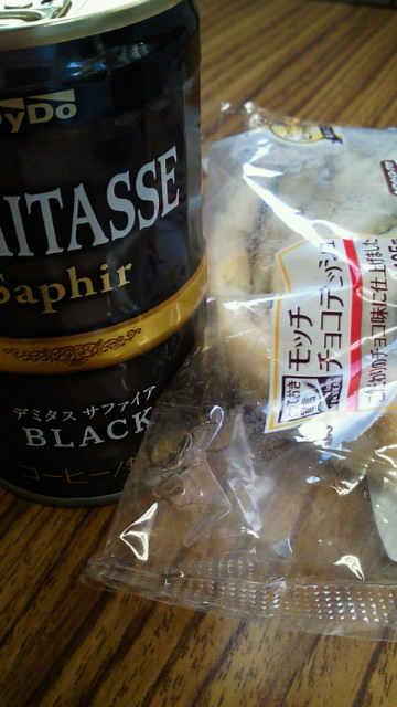 今日の朝ご飯はモッチチョコデニッシュとデミタスサファイア(旧デミタスブラック?)です。