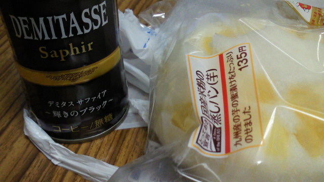 今日の朝ご飯は国産米粉の蒸しパン(芋)とデミタスサファイア。