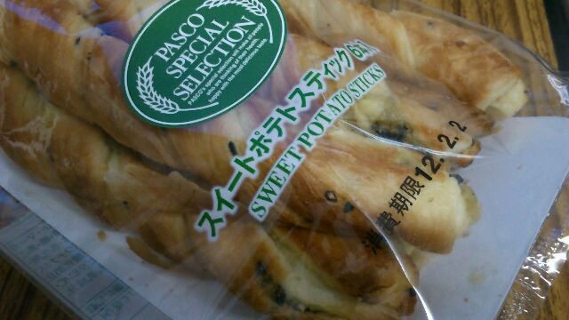 今日の朝ごはんは、スイートポテトスティックとおにぎり一個でした。