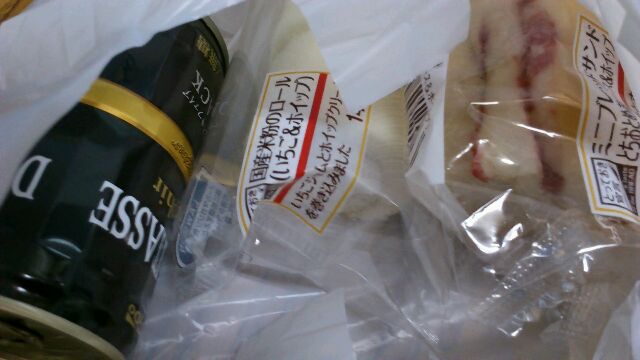 朝ごはんは定番となった組み合わせ、国産米粉のロールとミニブレットサンド(とちおとめ苺)でした。
