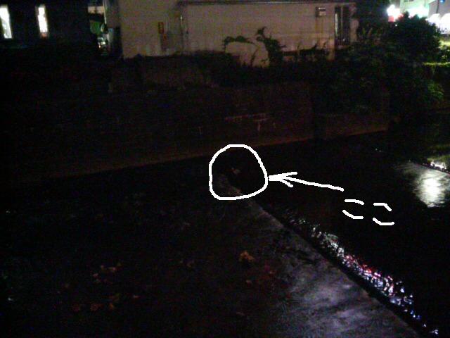 昨日の遅番の帰り道、その青鷺かどうかは分からないけど、全く同じところで魚を狙っている青鷺がいて、携帯のカメラに収めることが出来た。見にくいけど。(^^ゞ
