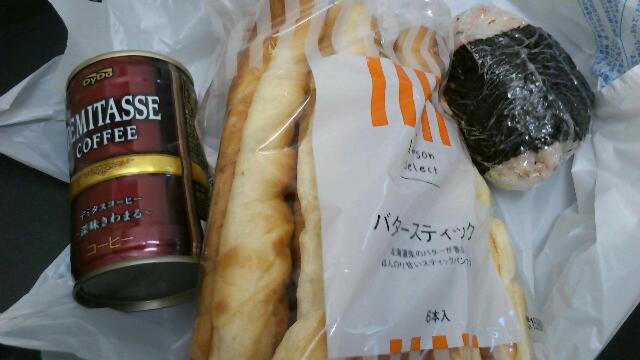 飲み物は、コーヒーと水です。昨日の勤務で、後半になって喉がカラカラになったので…。