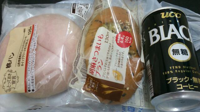 今日の晩おやつは、桃パンと胡麻さつまいもブランです。どちらもはじめて見たので、たぶん新商品なのでは?