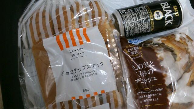 今日の朝ごはんはチョコチップスナックとケシの実とくるみのデニッシュでした。