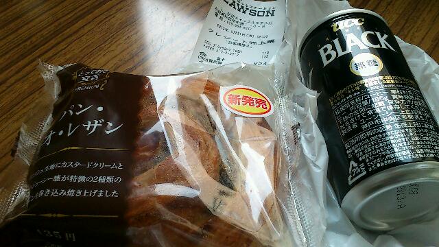 今日の朝ごはんはパン・オ・レザンというデニッシュパンみたいなパンとおにぎり1つでした。