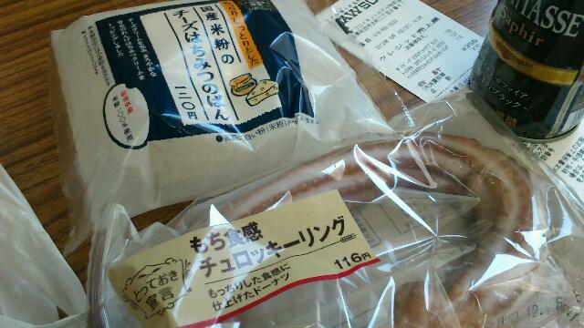 今日の晩おやつは国産米粉のチーズはちみつのパンとチュロッキーリングです。